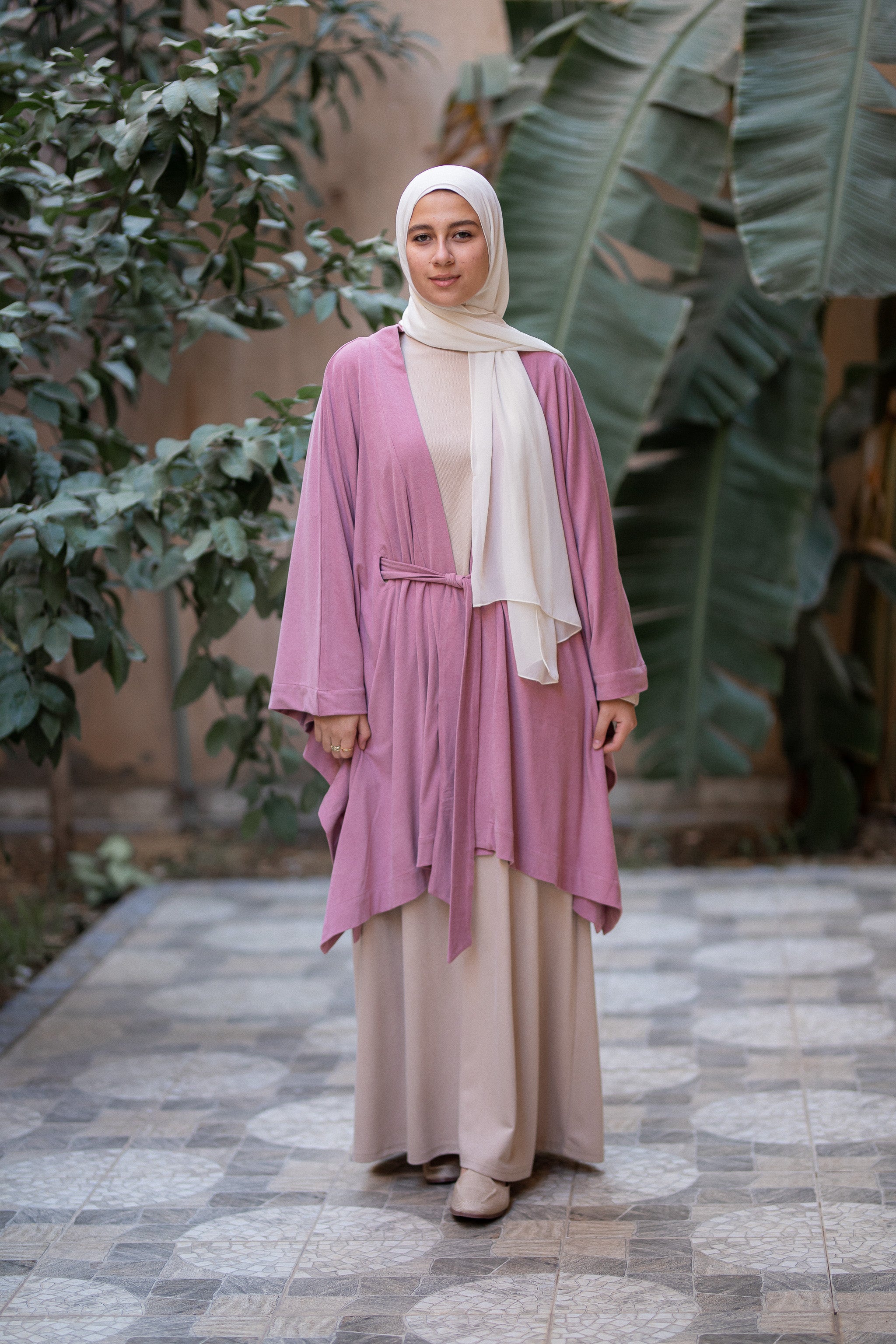 Knit Vintage Pink Poncho with belt